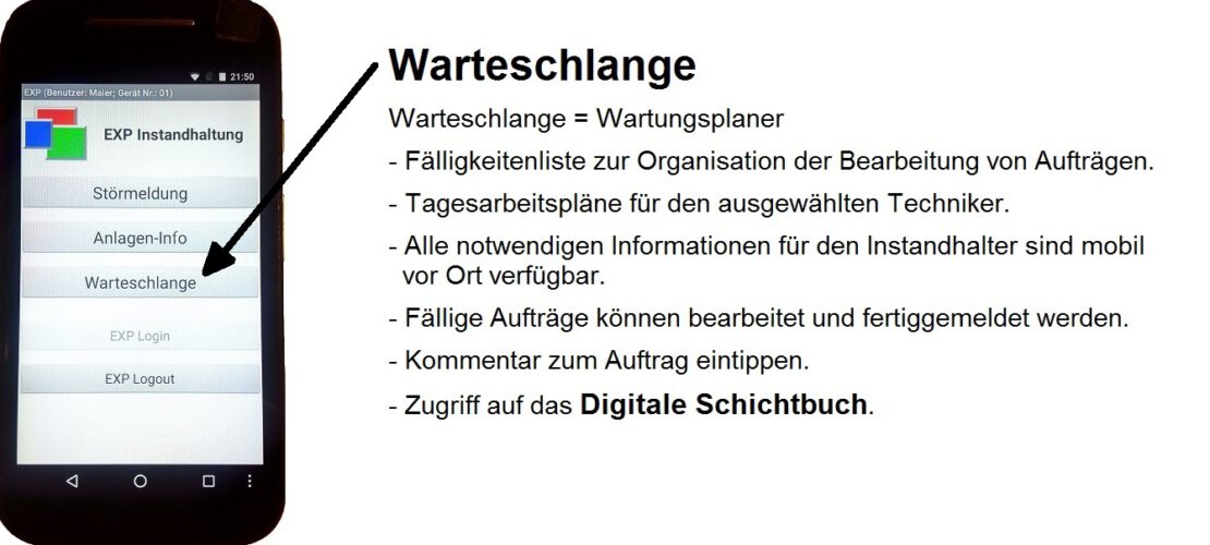 EXP-Wartungsplaner mit erweiterten Funktionen für Instandhaltung und Wartung